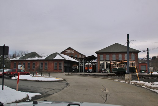 At the other end of the parking lot is what we came to see. The Trolley Museum. We parked, went in, and paid a small fee for me; Mike was free — one of the perks of being old, don't ya know.