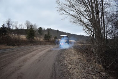 There are lots of ways to make one of these and the advantage is you can catch a lot of mice in one night, unlike a spring trap that can kill only one at a time. With Mike’s help we fashioned one from a bucket, a wire clothes hanger, and a piece of plastic pipe. I put peanut butter on the very center of the pipe roller and put it outside under the feral cat house.