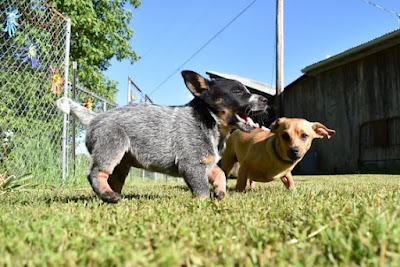 day after we got Raini, I had to mow the dog run. Bondi did what she always